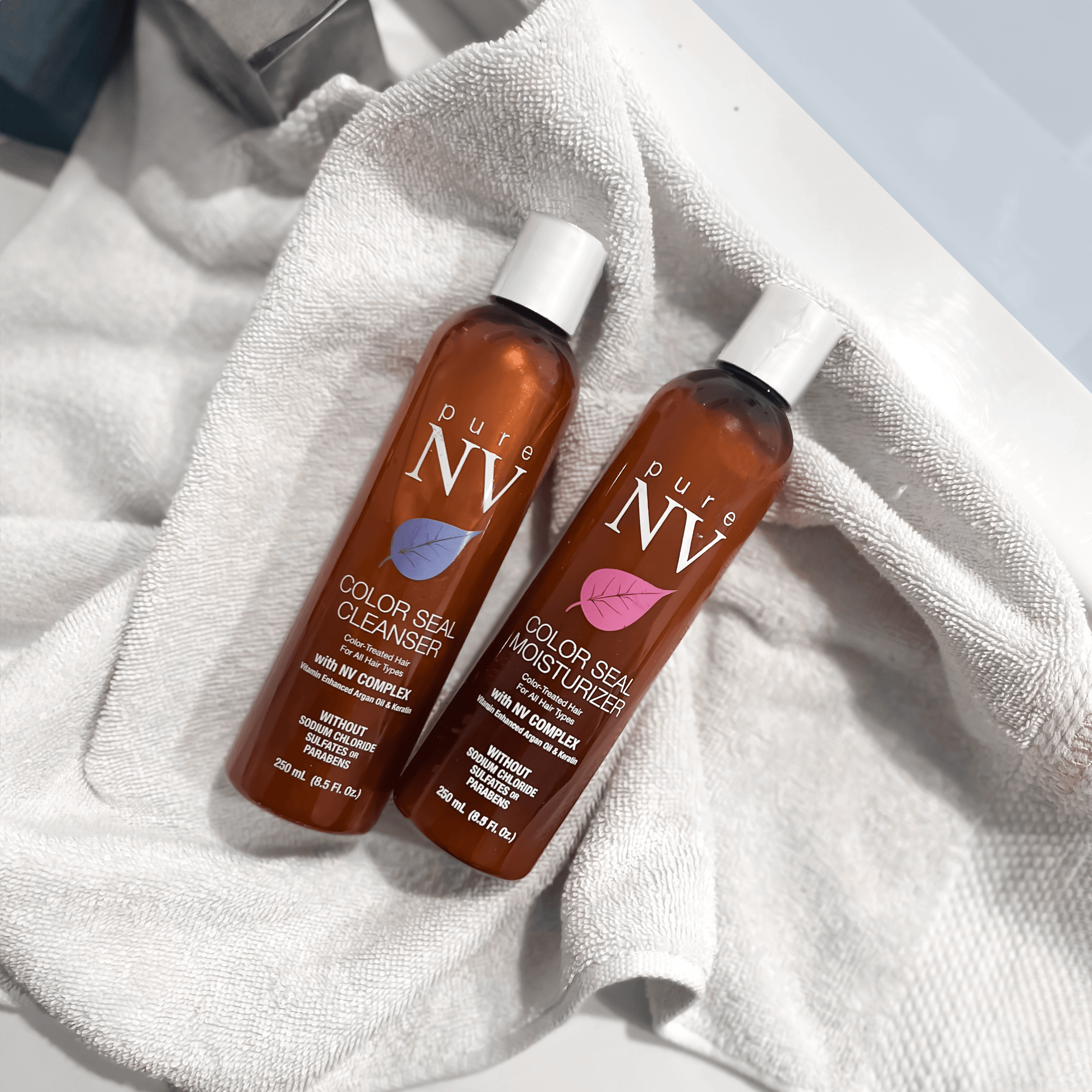 The Pure Nature's Vitamins' Color Seal Collection provides you with a post-color sealing treatment, a daily-use shampoo and conditioner, and a healing hair mask to prevent color wash-out while repairing dry and brittle color treated hair! This collection also features a Violet Brightening Cleanser for blonde, gray and white colored hair, to prevent yellow or ashy tones and brassiness.